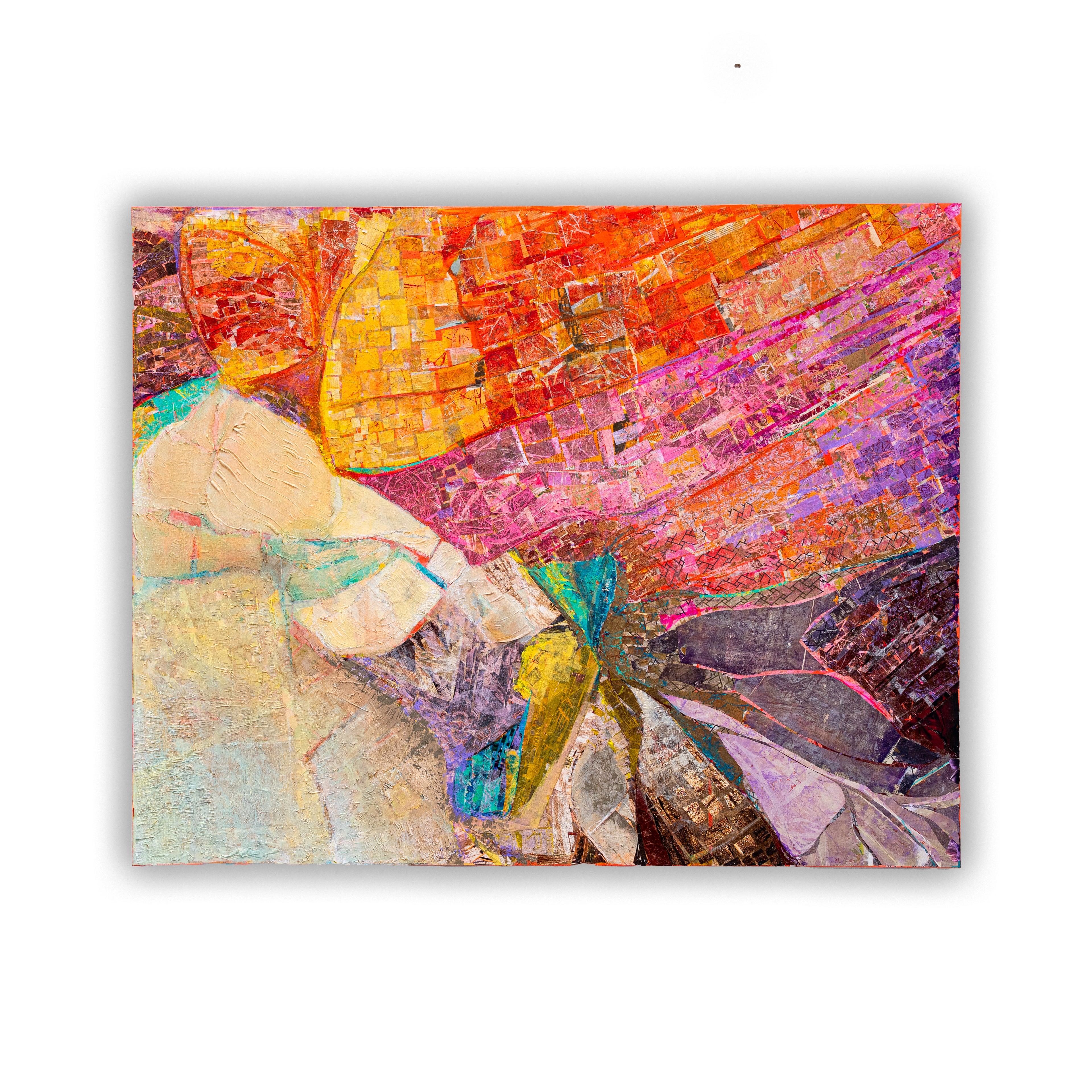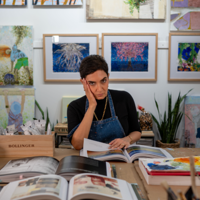 Omniah Ebeid is a Houston-based contemporary artist who works primarily in acrylic and mixed media. Her paintings often incorporate discarded and recycled materials that she views as not only tools but symbols of resilience, transformation and reinvention. She believes in combining these materials in her work and transforming them into elements of beauty and meaning.